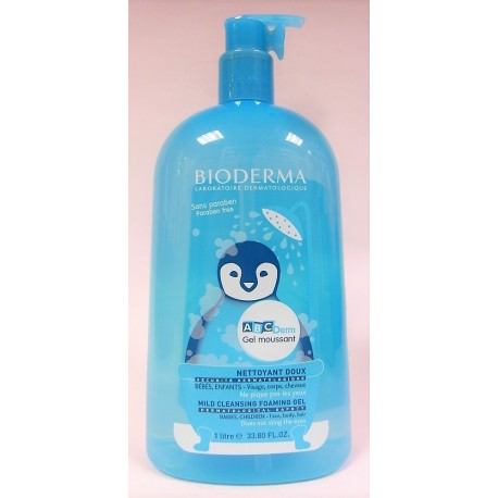 Le Gel moussant nettoyant doux ABCDerm Bioderma nettoie en douceur les peaux délicates du corps, des cheveux et du visage des enfants et des bébés.